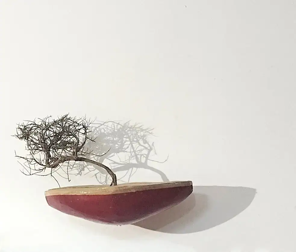 The wooden boats Eti Gadish De Lange carves accompanied her as transitional objects in attending to and parting from her parents on their final journey. In her wanderings on the seashore, she collects what the sea emits – pieces of rusted steel, roots, and more – and infuses the sense of degradation and ephemerality they elicit into the soft wood. It is as if she is summoning a cruise beyond time in her boats, boats that safeguard memory.